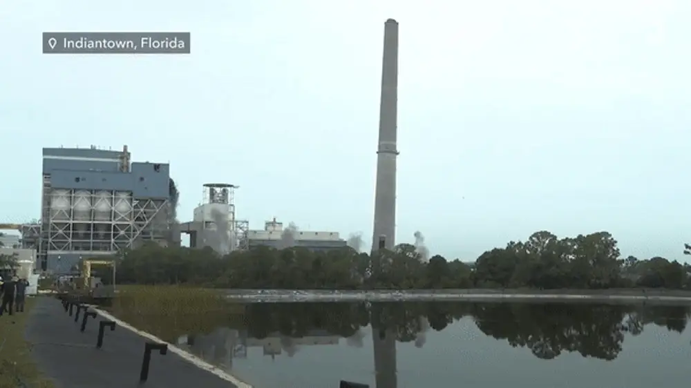 Компания Florida Power & Light (FPL) снесла свою последнюю угольную электростанцию в городе Индиантаун. Неактивный дымоход станции длиной 150 метров возвышался над городком более 25 лет. На его разрушение потребовалось менее 10 секунд.