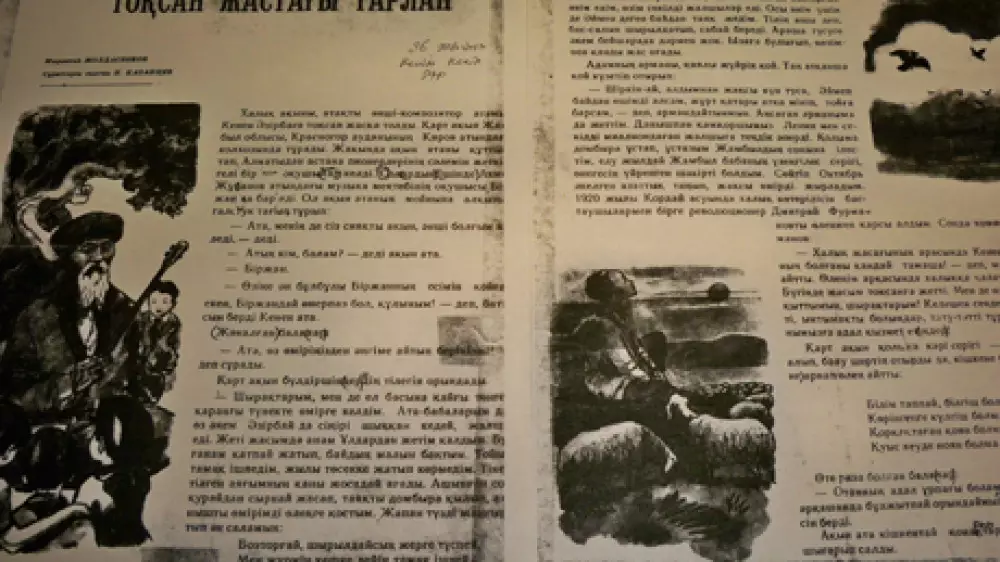 Как выяснилось, в 1975 году от имени Мырзатая Жолдасбекова в журнале "Пионер" корреспонденты издания опубликовали статью, в которой шла речь о встрече с известным импровизатором Кененом Азербаевым. В этом материале была описана встреча акына с детьми, которым он рассказывал о том, как жилось в его детстве и как сейчас. После беседы поэт, согласно рассказу, благословил мальчишек.