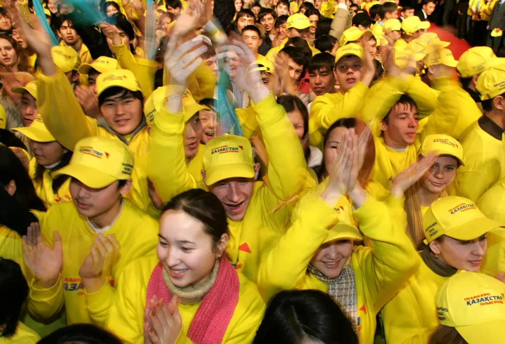 Празднование победы Нурсултана Назарбаева на президентских выборах собрало трехтысячный стадион в Астане. Молодые люди, политики, общественники, певцы и многие другие ликуют и скандируют "Вперед, вместе с лидером!".