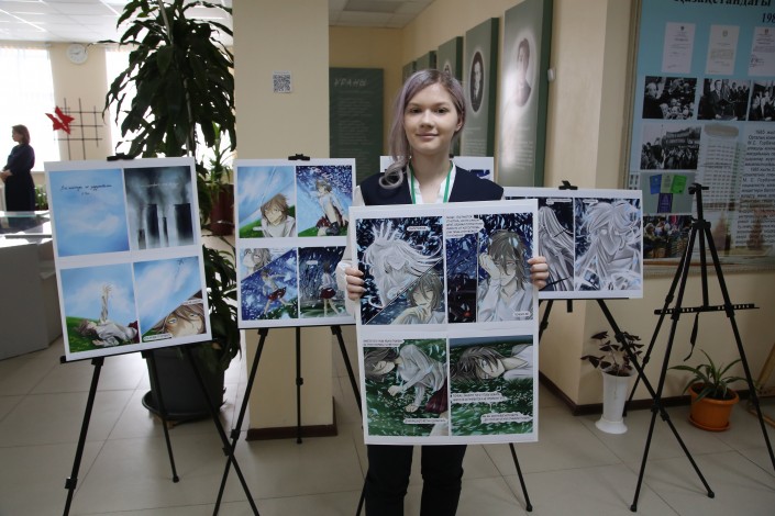 Однако не все проекты имели техническую направленность. Ева Агафонова из девятого класса школы  Нур-Султана представила комиксы, которые рассказывают о проблеме загрязнения воздуха и поднимают такой вопрос: является человек разрушителем или же созидателем.