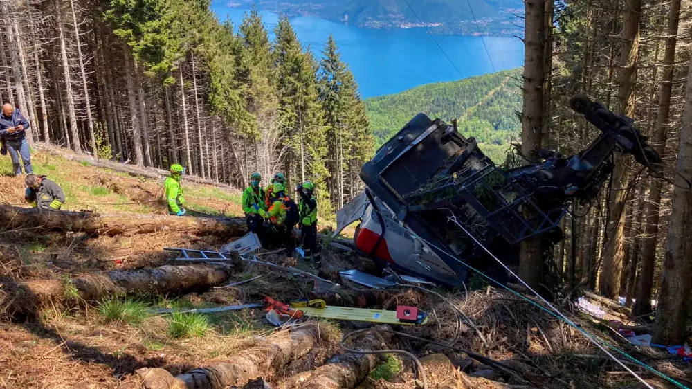 Трагедия произошла в воскресенье, 23 мая, на канатной дороге, соединяющей населенный пункт Стреза на берегу озера Маджоре и гору Моттароне высотой почти полторы тысячи метров.