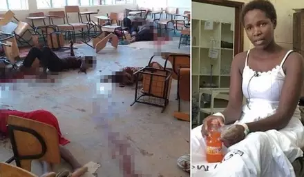 Синтия рассказала, что все это время сидела практически неподвижно под грудой одежды. "Я молилась Богу, чтобы меня не нашли", - говорит студентка. Издание отмечает, что в классе, где нашли девушку, боевики застрелили около 12 человек.