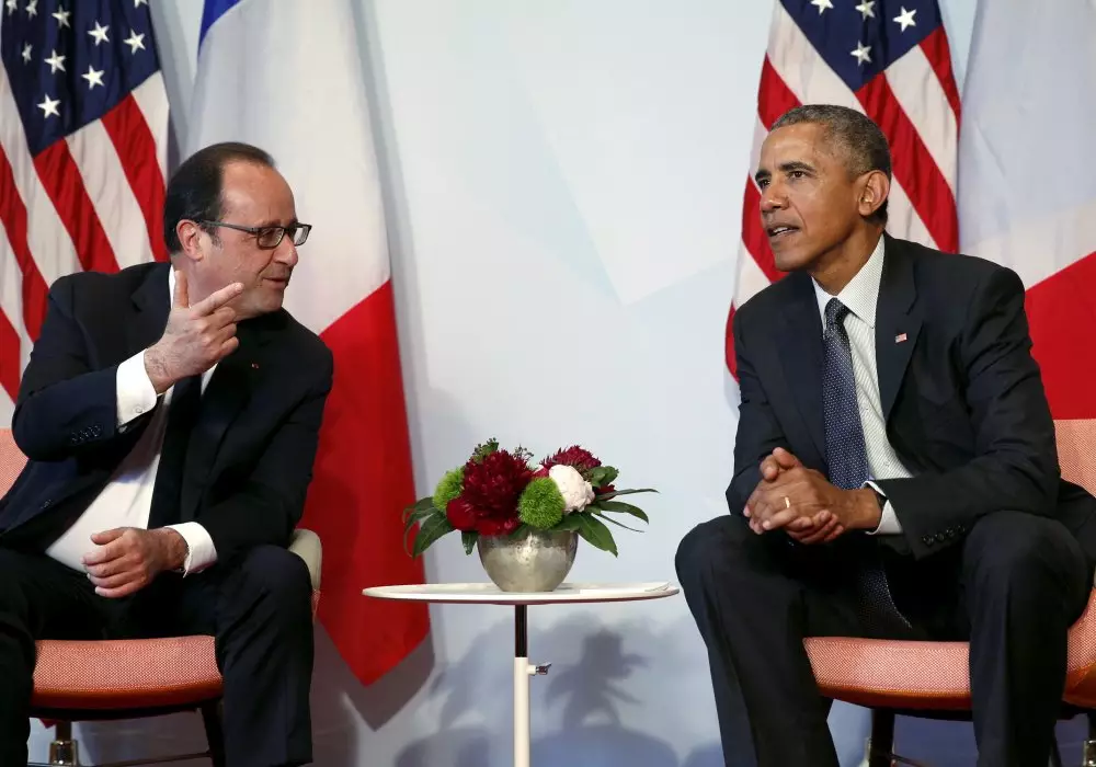 Встреча американского и европейского лидеров прошла 8 июня на полях саммита G7 в австрийском Эльмау. Сообщается, что Барак Обама и Франсуа Олланд согласились с тем, что экономические санкции против РФ должны оставаться в силе до тех пор, пока Россия полностью выполнит условия соглашения о мирном урегулировании с Украиной, заключенного в прошлом году. Также сообщается о том, что стороны договорились "оставаться едиными в стремлении заключить соглашение" в рамках переговоров "шестерки" международных посредников и Ираном по иранской ядерной программе.
