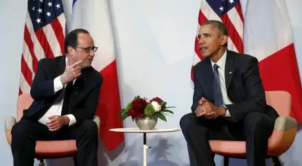 Встреча американского и европейского лидеров прошла 8 июня на полях саммита G7 в австрийском Эльмау. Сообщается, что Барак Обама и Франсуа Олланд согласились с тем, что экономические санкции против РФ должны оставаться в силе до тех пор, пока Россия полностью выполнит условия соглашения о мирном урегулировании с Украиной, заключенного в прошлом году. Также сообщается о том, что стороны договорились "оставаться едиными в стремлении заключить соглашение" в рамках переговоров "шестерки" международных посредников и Ираном по иранской ядерной программе.