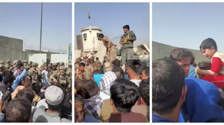 В аэропорт пытаются пробраться тысячи афганских беженцев. Происходит давка и слышны выстрелы. Решение о том, кого пропустить, а кого нет, принимают британские и американские военные. У многих беженцев нет соответствующих документов и шансов попасть на борт самолета.