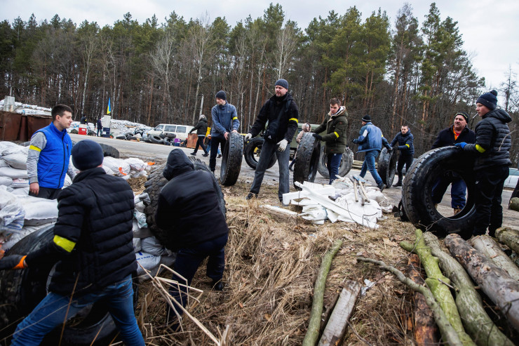 Сводка от Генштаба Украины: в Полесье оккупанты пытаются снова наступать на Киев. Для этого они сделали понтонную переправу через город Ирпень в районе Демидова. В украинской столице организована плотная система защиты. Ведется борьба с немногочисленными ДРГ численностью 3-15 человек. Они в форме ВСУ, но в российских бронежилетах. Россиянам не удалось захватить город Ирпень: их техника уничтожена. Украинские защитники удерживают оборону на всех обозначенных позициях в стране. Россияне с воздуха и на земле атакуют военные и гражданские аэродромы, силы ПВО, города и критическую инфраструктуру. Воздушные силы Украины отражают воздушные удары.