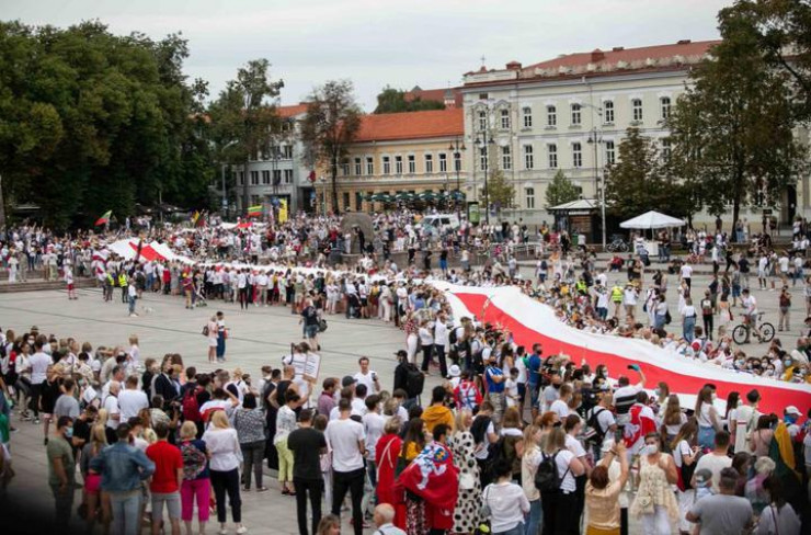 Вечером 23 августа около 50 тысяч жителей Литвы взялись за руки и образовали живую цепь от Вильнюса до населенного пункта Мядининкай на границе с Беларусью в знак поддержки протестующих в соседней стране. Прямую трансляцию с места событий вел портал DELFI, сообщает Tengrinews.kz.