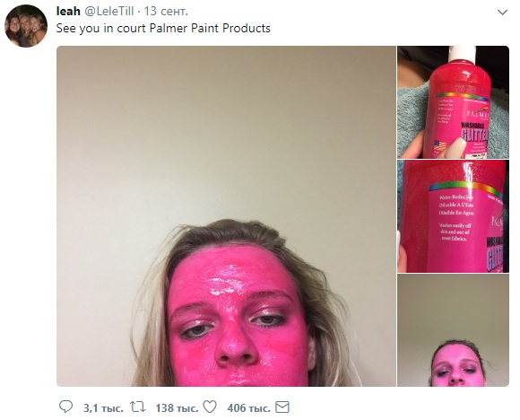 Девушка покрасила лицо несмывающейся розовой краской и хочет засудить производителя