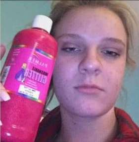 Как сообщает портал, пользовательнице под ником Leah Till захотелось намазать лицо глиттером, краской с блестками. Причем не специальным, который используют для макияжа, а обычным, которым рисуют плакаты. В оправдание своего поступка Лия продемонстрировала надпись на бутылке, гласящую, что краска "легко смывается с кожи и большинства тканей".