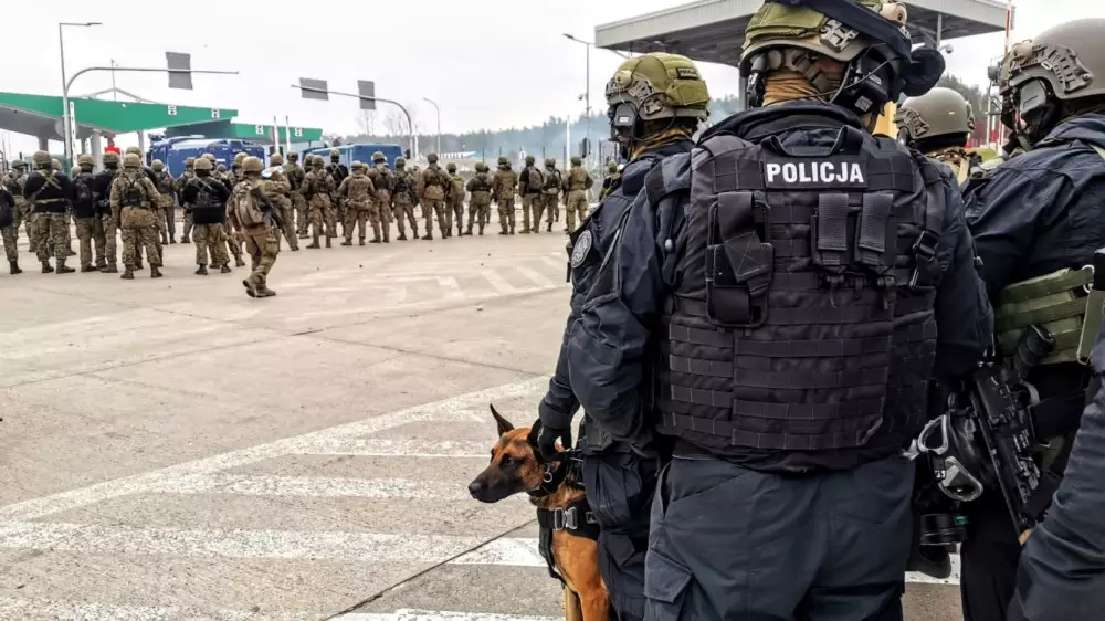 "Девять полицейских пострадали в результате действий на пограничном переходе в Кузнице. Также было повреждено снаряжение офицеров, в том числе щиты, каски и протекторы для конечностей", - говорится в заявлении.