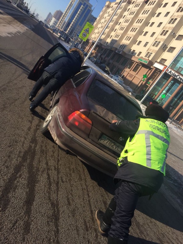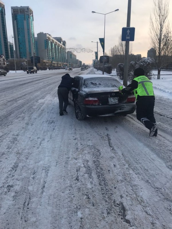 Помогать столичным водителям вызвались сотрудники полиции.