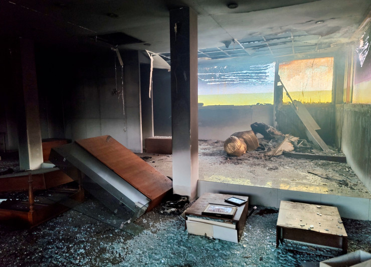 Сотни людей напали на небольшую группу полицейских, охранявших его виллу, и учинили акт вандализма. С виллы группа направилась в музей, посвященный покойному отцу Готабаи и Махинды, где снесли экспонаты и подожгли интерьер.