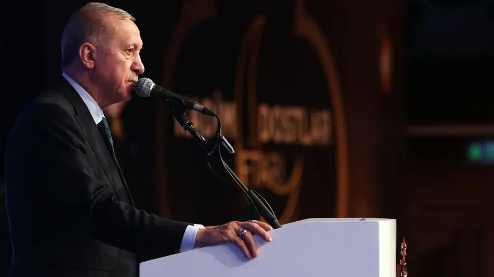 Поздравив с Рамазаном всех присутствующих, турецкий лидер подчеркнул, что в этот раз священный месяц является мрачным и горьким из-за Газы и оккупированных палестинских территорий.