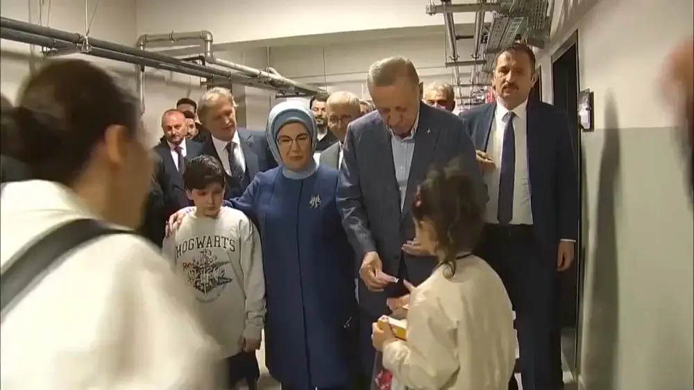 The President of Turkey arrives to vote - and distributes cash to children pic.twitter.com/ET3YCctvR6
