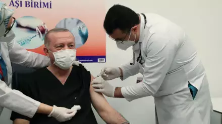 "В рамках нашей успешной программы вакцинации 254 тысячи медицинских работников получили свою первую дозу вакцины. Я также был вакцинирован, присоединившись к ним", - сказал турецкий лидер.