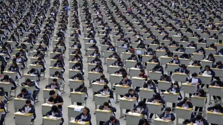 Қытайдағы мемлекеттік "Гаокао" деп аталады. Ол қытайлық мектептерде бір күні, бір сағатта өтеді. Оқушылар өздерімен тек қажет заттарды: қалам, қарындаш, өшіргіш, сызғыш және циркуль ғана ала алады. Одан бөлек зат тіпті су алып кіруге болмайды екен. Аудиторияда детектор, камера және мобиль байланысты үзіп тастайтын сигналдар орналастырылады.