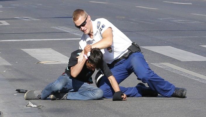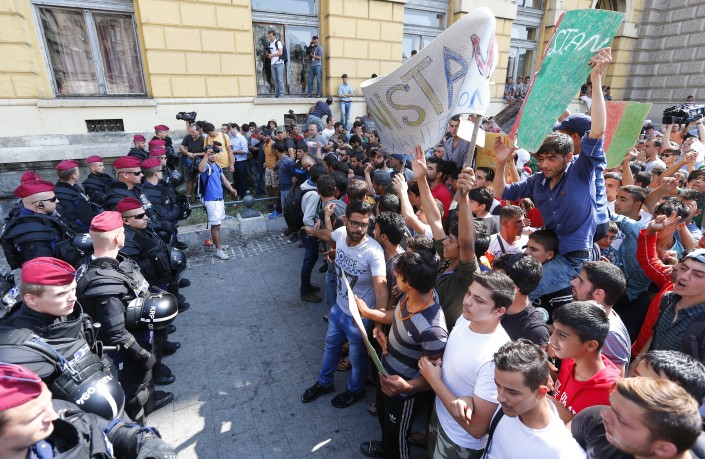 У вокзала в Будапеште вспыхнули стычки между полицией и мигрантами, протестующими против решения Венгрии запретить им посадку в поезда, на которых они могли бы отправиться в Германию и другие западноевропейские страны, где они рассчитывают получить убежище, сообщает BBC.