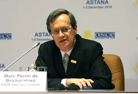 О необходимости постоянных встреч президентов Армении и Азербайджана заявил сегодня на пресс-конференции в Астане Генеральный Секретарь ОБСЕ Марк Перрен де Бришамбо, передает корреспондент Тengrinews.kz. Кроме того, он считает, что положительную роль в этом вопросе может сыграть авторитет Президента РК Нурсултана Назарбаева.