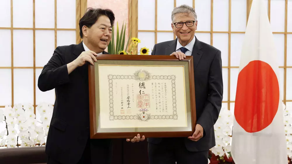 Министр иностранных дел Японии Есимаса Хаяси вручил основателю компании Microsoft миллиардеру Биллу Гейтсу орден Восходящего солнца первой степени, передает Tengrinews.kz со ссылкой на телеканал Fuji TV.