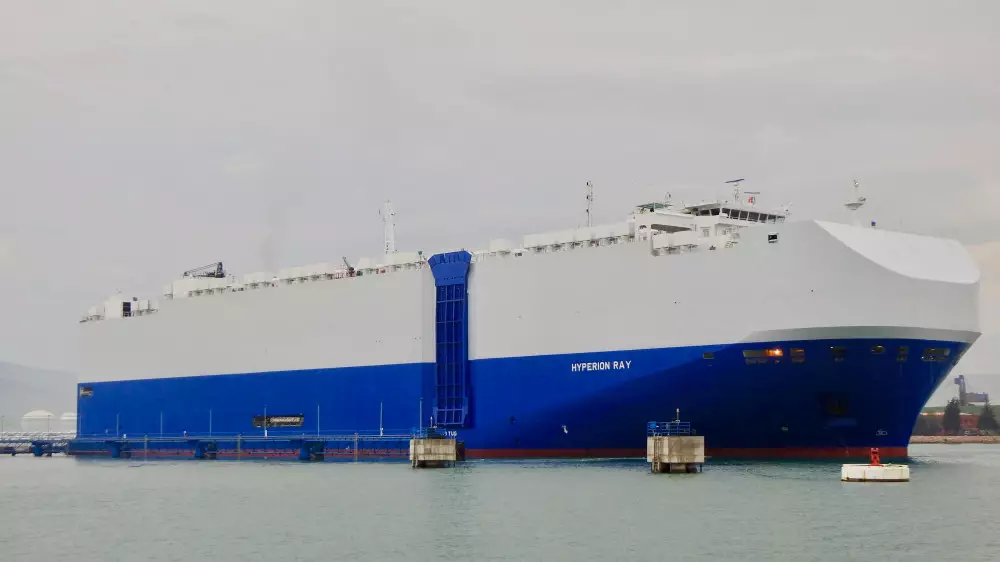 Данные отслеживания судов Refinitiv показали, что судно Hyperion Ray под флагом Багамских островов перевозило автомобили и направлялось в порт Фуджейра из кувейтского порта Мина аль-Ахмади.