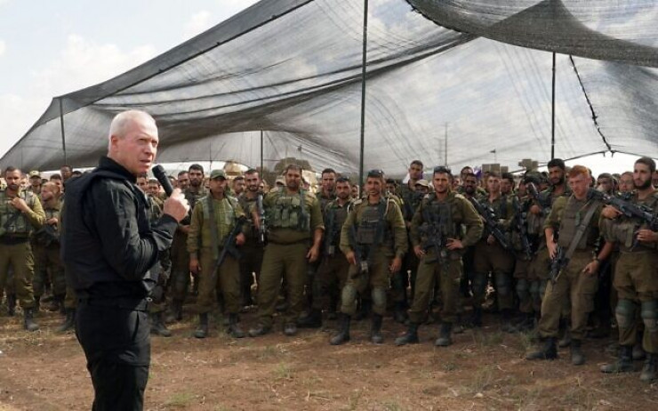 Министр обороны Израиля Йоав Галлант выступает перед военными на границе с сектором Газа. Фото минобороны Израиля