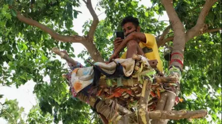 Он решил смастерить себе из бамбука маленькую платформу на дереве и постелил на ней одеяло. Родители передавали сыну еду и воду с помощью ведра на веревке. В туалет ходил ночью в поле. На дереве Шива большую часть времени провел с телефоном.
