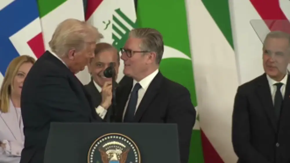 Затем Трамп спросил: "А где Великобритания?" Премьер-министр этой страны Кир Стармер поднял руку. Трамп подозвал его к трибуне, и Стармер подумал, что он будет выступать.
