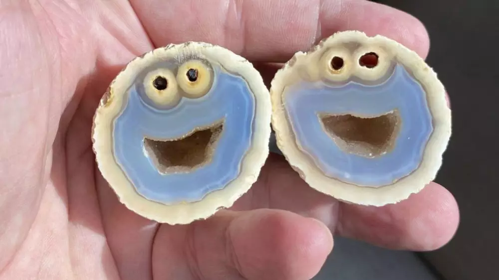 Глыба вулканической породы была обнаружена калифорнийским геологом Майком Бауэрсом в районе Рио-Гранде-дол-сул в Бразилии. Снаружи камень в форме яйца выглядел довольно обыкновенно. Однако после его разделения на две части выяснилось, что камень содержит кристаллы голубого кварца, которые в точности формируют изображение вымышленного кукольного персонажа Коржика из телешоу "Улица Сезам".