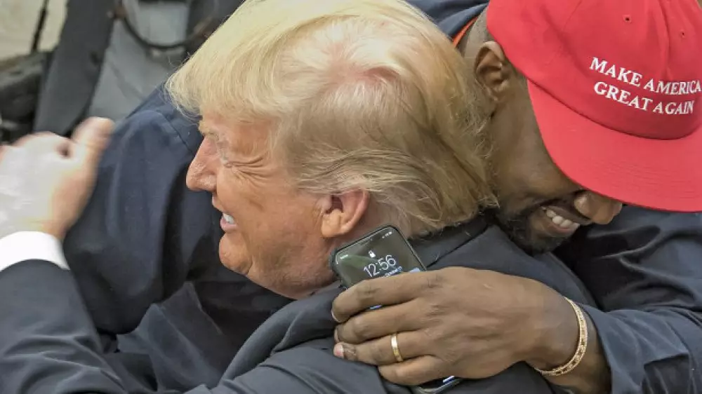 Канье Уэст бұл кездесуге Трамптың "Американы қайтадан ұлы етеміз" деген ұраны жазылған қызыл бейсболкамен барған. Сол кезде Трампқа "Канье келесі президент болуы мүмкін бе?" деген сұрақ қойылған кезде, ол: "Әбден мүмкін" деп жауап берген.