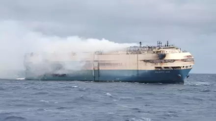"Вмешательство, чтобы потушить пламя, должно проводиться очень медленно. Это займет некоторое время, так как литий-ионные батареи в электромобилях на борту провоцируют огонь", - сказал капитан ближайшего порта на азорском острове Файал Жоао Мендес Кабекас, добавив, что специальное оборудование для его тушения уже в пути.