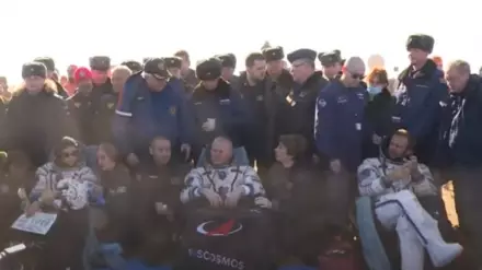 После приземления поисковая группа взяла спускаемую капсулу под охрану, затем по очереди из "Союза" помогла выбраться всем трем членам экипажа. После медицинского обследования на месте спецрейс заберет их в Подмосковье. Уже во вторник, 19 октября, "киноэкипаж" даст свою первую послеполетную пресс-конференцию.