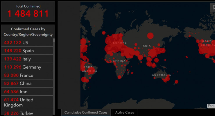 По состоянию на 9 апреля во всем мире зафиксировано около 1,5 миллиона зараженных коронавирусом, а точнее 1 484 811. Из них 88 538 человек скончались, а 329 876 - выздоровели. Такие данные приводит Университет Хопкинса в США, передает Tengrinews.kz.