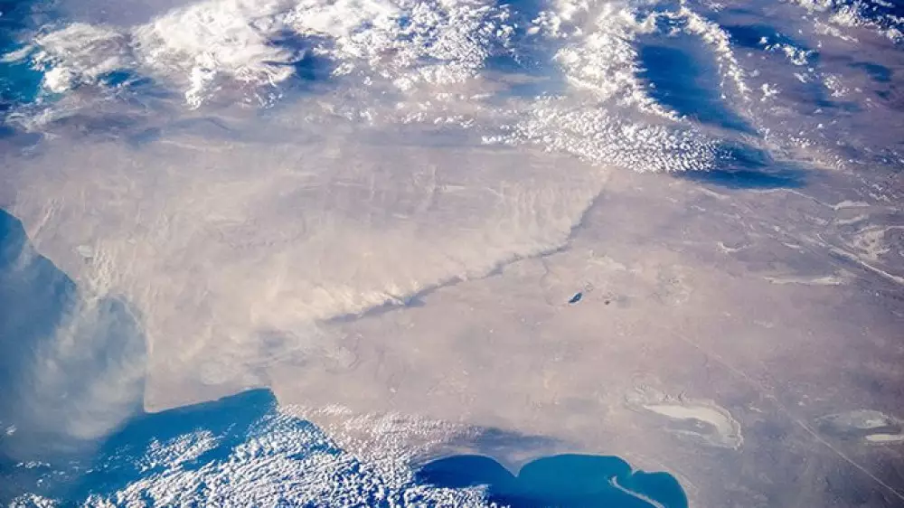"Пылевая буря на Каспии, Казахстан", - подписал снимок космонавт.