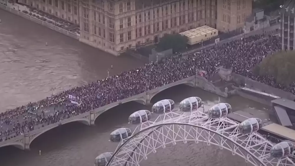 Участники акции требовали прекратить огонь в Газе. Некоторые выкрикивали лозунг: "От реки до моря Палестина будет свободной", который многие евреи считают антисемитским и воспринимают как посягательство на территорию Израиля и призыв к его уничтожению. Лондонская полиция сообщила, что в акции приняли участие примерно 100 тысяч человек.