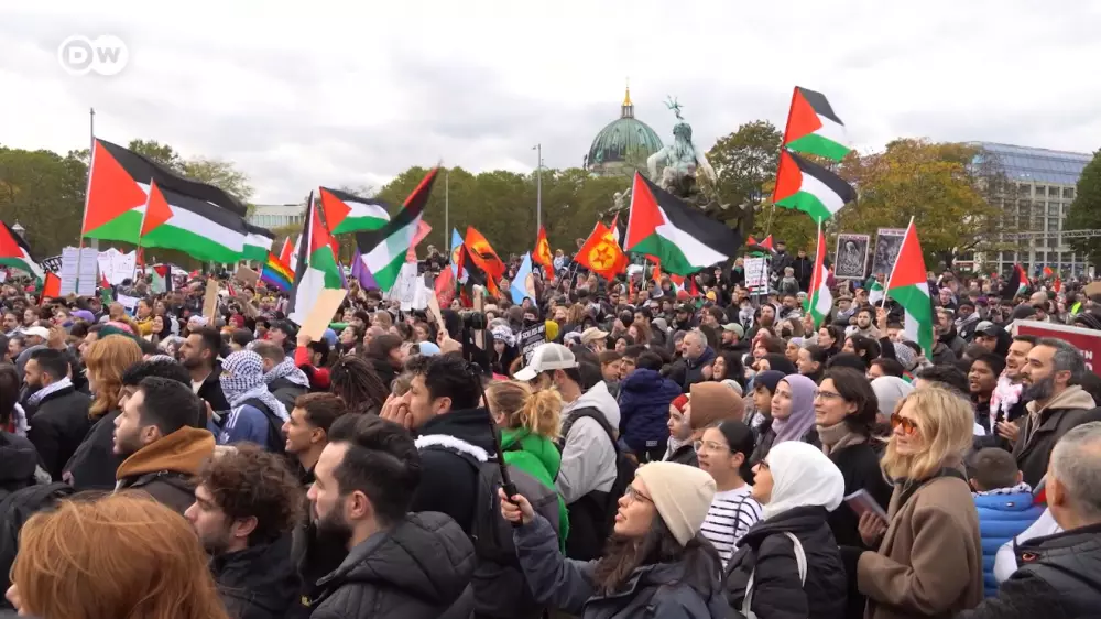 В Берлине, по данным полиции, на акцию "Свободная Палестина" собрались не менее 6500 человек. В местной прессе мероприятие называют самым многолюдным с начала войны на Ближнем Востоке.