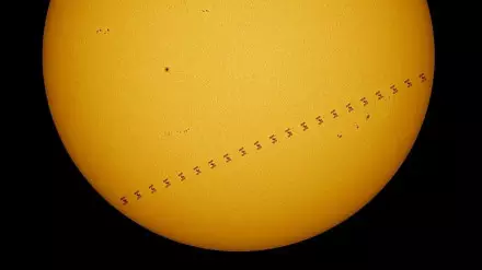 Фотограф и астроном-любитель Джейми Купер сделал фото МКС недалеко от британского города Давентри в графстве Нортгемптоншир 17 июня. Он запечатлел весь транзит МКС на фоне Солнца, длившийся меньше секунды, используя телескопы и высокоскоростные видеокамеры.