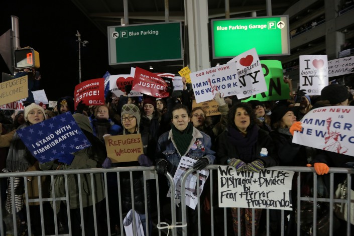 После того как 28 января американские власти начали исполнять распоряжение Трампа, в крупнейших аэропортах США начались акции протеста против указа. С утра субботы в аэропортах Нью-Йорка, Сан-Франциско, Чикаго, Сиэтла и других крупнейших городов проходят митинги в поддержку мигрантов. Люди приезжают к аэропортам, требуя признать действия президента антиконституционными. По всей стране в акциях протеста участвуют тысячи человек, сообщает Meduza.
