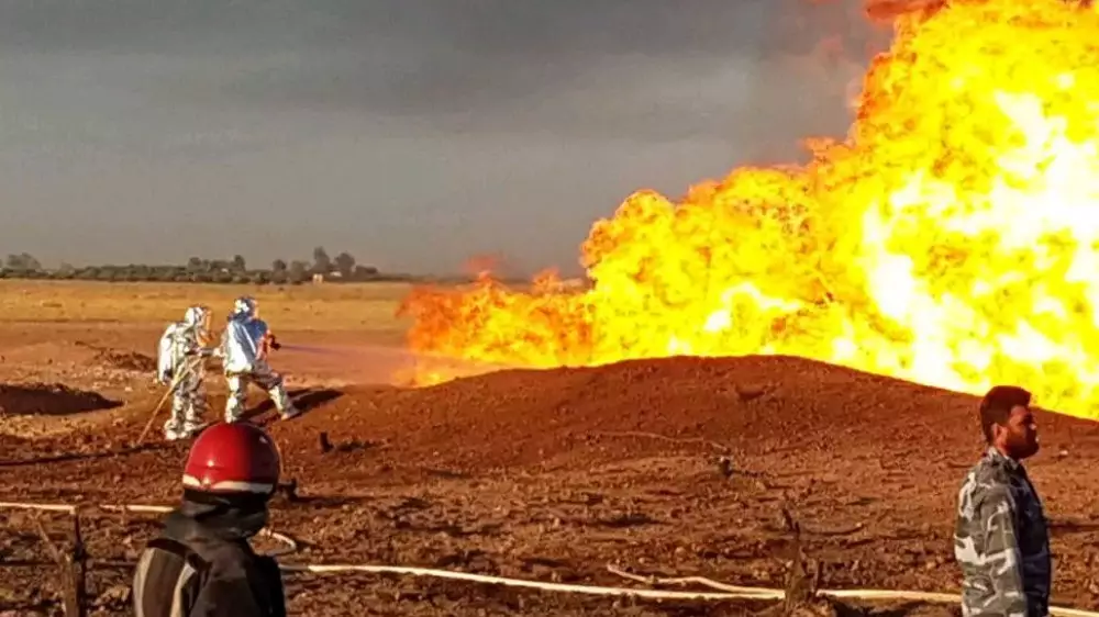 #Syria: more photos showing blast which hit the main gas pipeline in E. #Damascus province (btwn Dumeir & Adra). Fire now extinguished, however electricity still cut off in many regions. https://t.co/Twr9yqwGNr pic.twitter.com/zm1AzIobRF