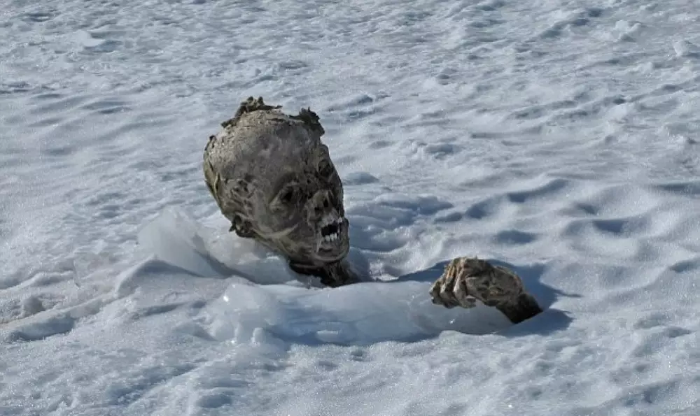 Останки одного из альпинистов спасатели обнаружили в 300 метрах от пика (высота вулкана - около 5610 метров. - Прим.), второго - в 150 метрах. За долгие годы тела превратились в обледеневшие мумии.