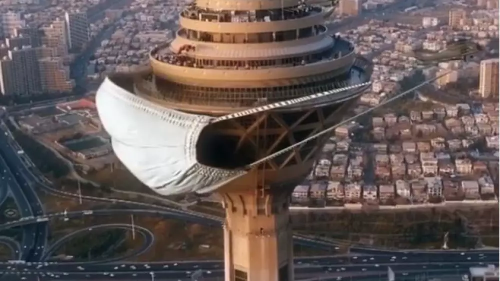 Хамид Эбрахимния смонтировал видео с двумя вертолетами, которые пытаются "защитить" небоскреб от болезни. Работу он опубликовал на своей странице в Instagram.