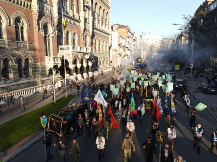 В среду, 28 апреля, около сотни националистов устроили шествие в центре Киева, посвященное годовщине создания дивизии СС "Галичина" в годы Второй мировой войны, передает Tengrinews.kz со ссылкой на "Украинскую правду" и "Страну.ua".