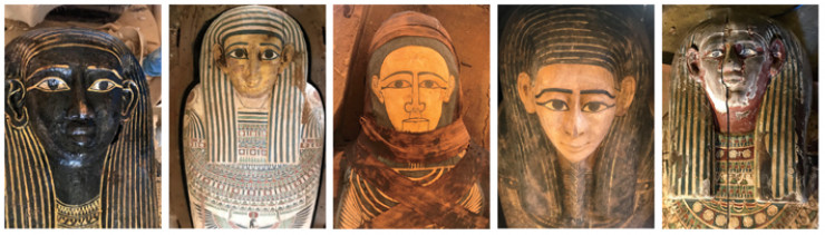 Археологи нашли 100 ярко раскрашенных саркофагов, содержащих мумифицированные останки людей, умерших около 2500 лет назад в Египте. Они были найдены сложенными друг на друга рядом с 40 статуями погребального божества Птах-Сокар-Осириса и бронзовой скульптурой бога цветов лотоса Нефертума. Исследователи датируют все захоронения 26-й династией, 688–525 годами до нашей эры, основываясь на именах, начертанных на гробах.