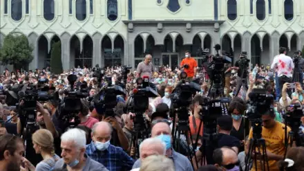 Журналисты сосредоточены у здания парламента на проспекте Руставели, где в шесть вечера анонсирована акция протеста с требованием отставки правительства. Призывы к населению идти на акцию открыто транслируют в прямом эфире все оппозиционные телеканалы.