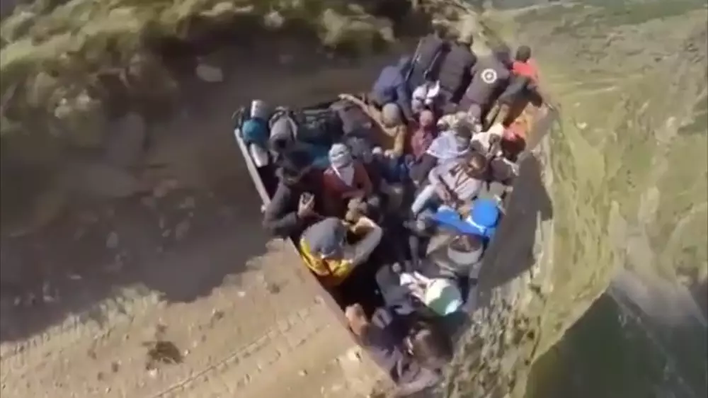 Пользователь Twitter опубликовал видео, на котором запечатлен грузовик, везущий людей по горной дороге в Гималаях. Публикация удивила многих пользователей Сети, увидевших в ролике "ковер-самолет", передает Tengrinews.kz со ссылкой на РИА Новости.