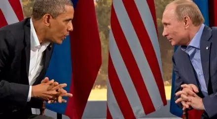 Отношения РФ и США остаются важнейшим фактором обеспечения стабильности - Путин Барак Обама и Владимир Путин. Фото Evan Vucci / AP©
