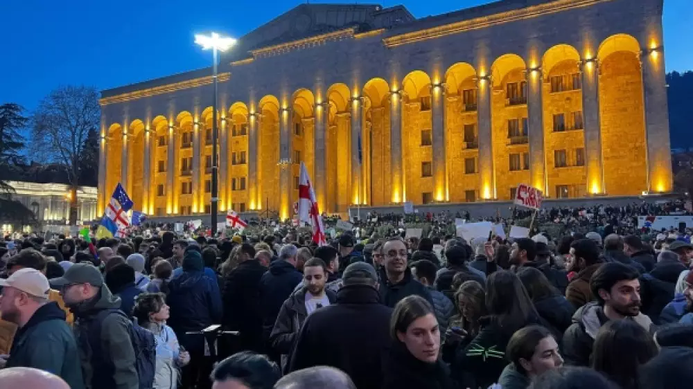 Ранее в Грузии начались протесты из-за того, что парламент принял в первом чтении законопроект "О прозрачности иностранного влияния", который раскритиковали ЕС и посольство США в Тбилиси. Тысячи людей вновь собрались у здания парламента в Тбилиси.