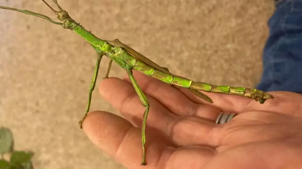 Сообщается, что палочное насекомое, известное как Diapherodes gigantea, показало свои истинные цвета после того, как сбросило кожу, шокировав владелицу Лорен Гарфилд. Как оказалось, у него ярко-зеленое тело самки и коричневые крылья самца.