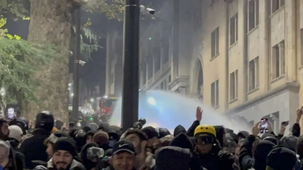 Тысячи протестующих вернулись на улицы Тбилиси в пятницу вечером, чтобы выразить протест против решения правительства приостановить переговоры о вступлении в Евросоюз "до конца 2028 года", передает Tengrinews.kz со ссылкой на CNN.