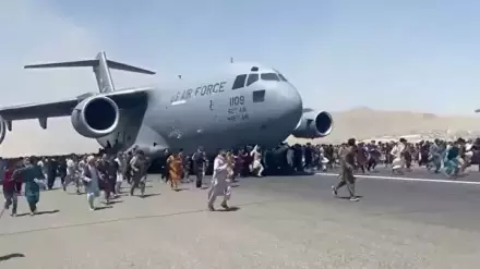 Ранее СМИ распространили кадры, на которых видно, как с американского самолета, вылетающего из Кабула, в какой-то момент полетели вниз черные точки. Предполагалось, что это были зацепившиеся за самолет люди, желающие покинуть Афганистан.