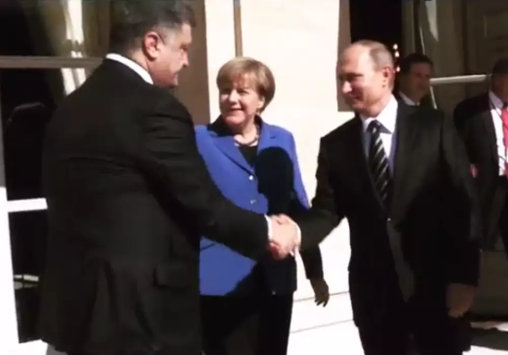 Путин и Порошенко пожали друг другу руки в присутствии Меркель